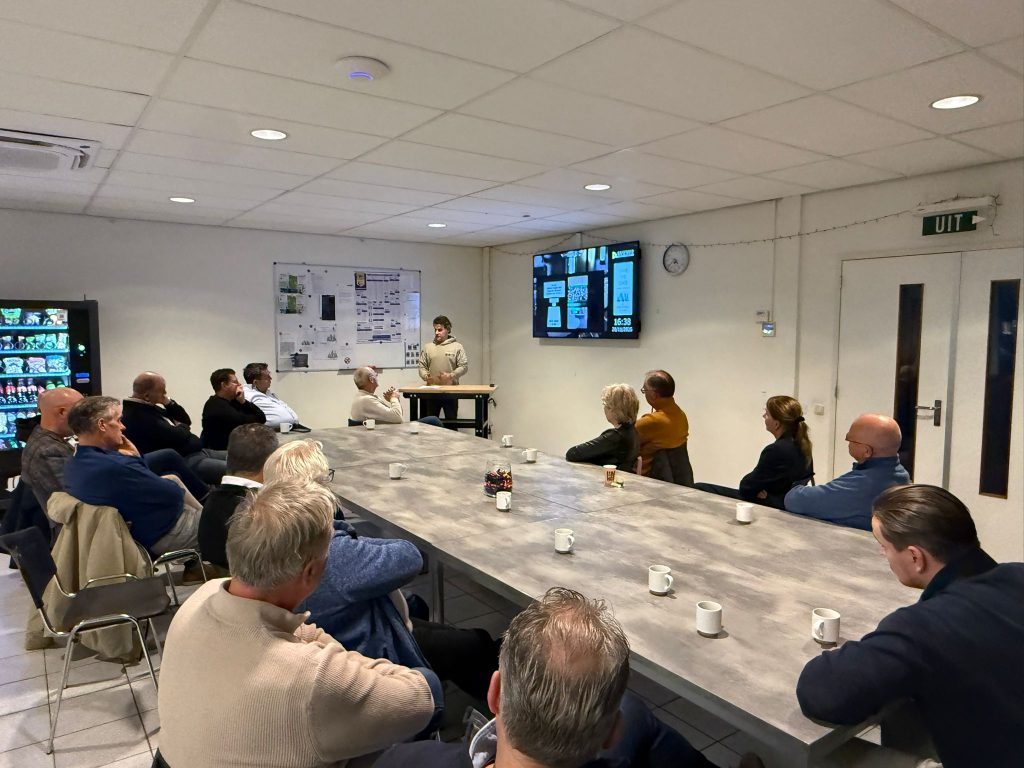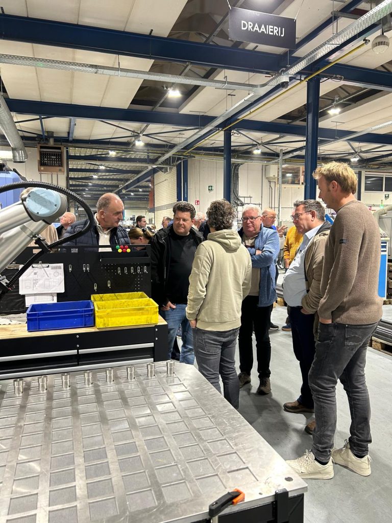 Hierna volgde een rondleiding op de werkvloer. Indrukwekkend om te zien wat zich hier allemaal afspeelt. Veel jonge medewerkers, het bedrijf staat goed bekend als opleidingsplek voor BBL-studenten, waar ook weer nieuwe medewerkers uit voortkomen. De machines, voor een groot deel robot-gestuurd, draaien en frezen allerlei metalen en aluminium onderdelen die aan verschillende afnemers in de regio geleverd worden. Door alles in eigen beheer te houden zijn er korte lijnen in het bedrijf, waardoor snel geschakeld kan worden tot volle tevredenheid van hun klanten.