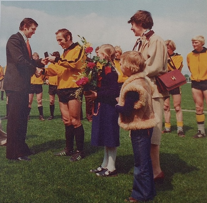 Kampioenselftal uit 1973, met Derk als 4de van rechts staan op de foto.